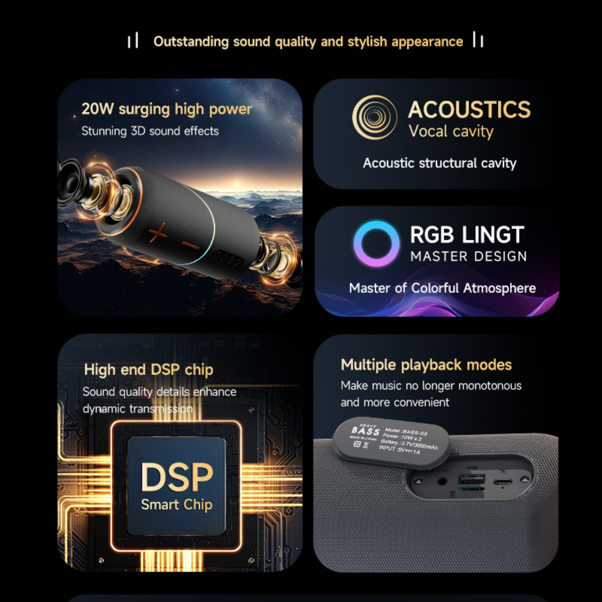 BASS-05 20W Portable Wireless Bluetooth Speaker