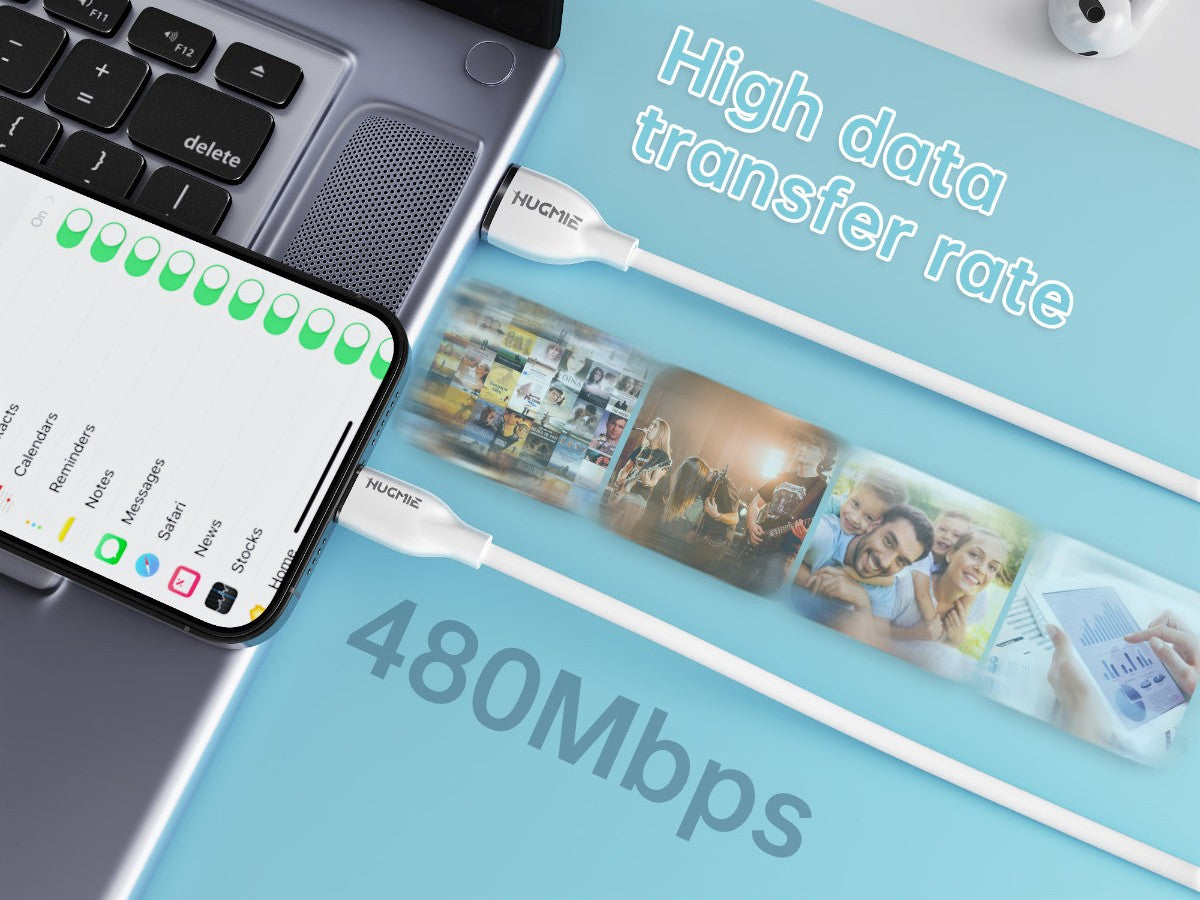 Hugmie® Silicone USB A to Lightning Fast Charging Cable: Engineered for optimal performance, this cable ensures swift charging and high-speed data transfer, keeping your devices powered up and connected effortlessly.