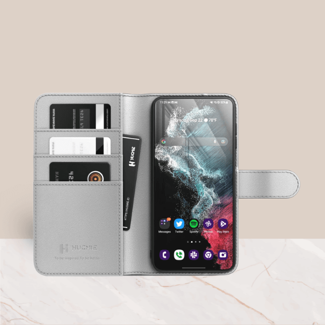 Premium Protection: The Hugmie® Classic Series Samsung S24 Plus leather folio case combines genuine leather with a sturdy plastic frame, providing all-around protection against scratches and bumps.